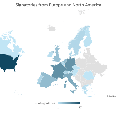 The global reach of this initiative is immediately clear: 93 companies – accounting for 42% of the total – are based outside the European Union. The vast majority of these are in North America (47 in the USA and three in Canada), followed by 16 in the Asian continent (including five in India and two in China), two in Australia, one in Africa (Benin) and one in Russia. Finally, twenty-three companies are based in European countries that are not part of the EU: twelve in the UK, six in Switzerland and five in Norway.
